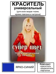Краситель для окрашивания ткани и одежды, идеально подходит для обновления и покраски джинс и джинсовой одежды. Краска так же предназначена для тканей и одежды их хлопка,льна, вискозы,тенселя,смешанных тканей в состав которых содержание синтетики не должно превышать 50%. Качество окрашивание не уступает фабричному. 1 упаковка краски рассчитана на 1,5 кг.сухой ткани. Сильно выгоревшие, потёртые места одежды могут отличаться по цвету при окрашивании более светлыми,окрашивание придётся повторить для более тёмного и равномерного цвета. Краска не предназначена для 100% синтетики,лавсана,нитрона. Рекомендации: перед применением необходимо ознакомиться с инструкцией на упаковке красителя.